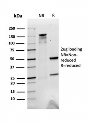 SDS-PAGE Analysis of Purified Alpha-2-Macroglobulin Mouse Monoclonal Antibody (A2M/3623). Confirmation of Purity and Integrity of Antibody.