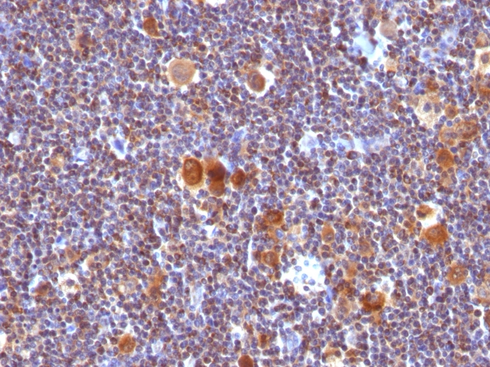 Formalin-fixed, paraffin-embedded human Hodgkin's Lymphoma stained with Bax Monoclonal Antibody (Clone SPM33).