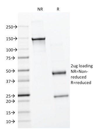 200ug/ml of Ab purified from Bioreactor Concentrate by Protein A/G. Prepared in 10mM PBS with 0.05% BSA & 0.05% azide. Also available WITHOUT BSA & azide at 1.0mg/ml.