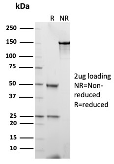 Recognizes a protein of 150kDa, which is identified as the high molecular weight variant of Caldesmon. Two closely related variants of human caldesmon have been identified which are different in their electrophoretic mobility and cellular distribution. The h-caldesmon variant (120'150kDa) is predominantly expressed in smooth muscle whereas l-caldesmon (70'80kDa) is found in non- muscle tissue and cells. Neither of the two variants has been detected in skeletal muscle. This MAb recognizes only the 150kDa variant (h-caldesmon) in Western blots of human aortic media extracts and is unreactive with fibroblast extracts from cultivated human foreskin. Caldesmon is a developmentally regulated protein involved in smooth muscle and non-muscle contraction.