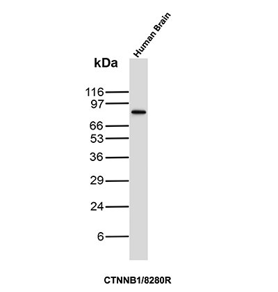 Western Blot Analysis of human brain lysate using CTNNB1 Rabbit Recombinant Monoclonal Antibody (CTNNB1/8280R).