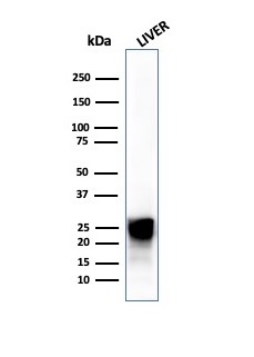 Formalin-fixed, paraffin-embedded human liver stained with Cathepsin D Mouse Monoclonal Antibody (CTSD/4497).
