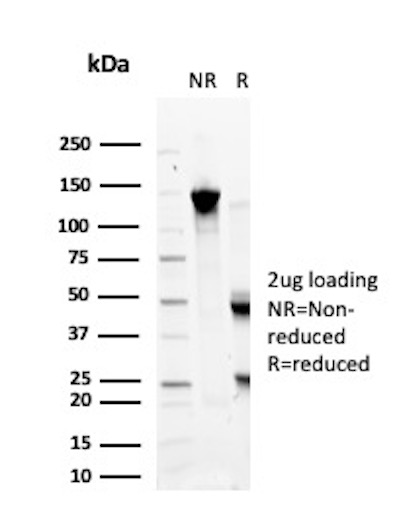 Recognizes a single chain glycoprotein of 105/120kDa, identified as CD30/Ki-1. CD30 is synthesized as a 90kDa precursor, which is processed in the Golgi complex into a membrane-bound phosphorylated mature 105/120kDa glycoprotein. In Hodgkin's disease, CD30/Ki-1 antigen is expressed by mononuclear-Hodgkin and multinucleated Reed-Sternberg cells. It is also expressed by the tumor cells of a majority of anaplastic large cell lymphomas as well as by a varying proportion of activated T and B cells. This antibody distinguishes large cell lymphomas derived from activated lymphoid cells from histiocytic malignancies and lymphomas derived from resting and precursor lymphoid cells or from anaplastic carcinomas. About one third of the Ki-1 positive lymphomas lack the leukocyte common antigen (CD45).