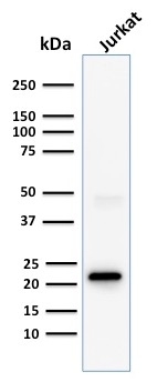 Recognizes the epsilon-chain of CD3, which consists of five different polypeptide chains (designated as gamma, delta, epsilon, zeta, and eta) with MW ranging from 16-28kDa. The CD3 complex is closely associated at the lymphocyte cell surface with the T cell antigen receptor (TCR). Reportedly, CD3 complex is involved in signal transduction to the T cell interior following antigen recognition. The CD3 antigen is first detectable in early thymocytes and probably represents one of the earliest signs of commitment to the T cell lineage. In cortical thymocytes, CD3 is predominantly intra-cytoplasmic. However, in medullary thymocytes, it appears on the T cell surface. CD3 antigen is a highly specific marker for T cells, and is present in majority of T cell neoplasms.