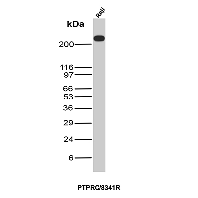 CD45R, also designated CD45 and PTPRC, has been identified as a transmembrane glycoprotein, broadly expressed among hematopoietic cells. Multiple isoforms of CD45R are distributed throughout the immune system according to cell type. These isoforms arise because of alternative splicing of exons 4, 5, and 6. The corresponding protein domains are characterized by the binding of monoclonal antibodies specific for CD45RA (exon 4), CD45RB (exon 5), CD45RC (exon 6) and CD45RO (exons 4 to 6 spliced out). The variation in these isoforms is localized to the extracellular domain of CD45R, while the intracellular domain is conserved. CD45R functions as a phosphor-tyrosine phosphatase. Antibody to CD45 is useful in differential diagnosis of lymphoid tumors from non-hematopoietic undifferentiated neoplasms.