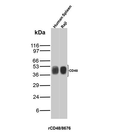 Reacts with human CD48, a 45kDa glycosyl phophatidyl-inositol (GPI)-anchored cell surface protein. CD48 is strongly expressed on lymphocytes and monocytes and weakly on granulocytes but is absent on platelets, fibroblasts, epithelium and endothelium. CD48 is one of marker for detecting the defects of GPI anchoring structure on the patients with paroxysmal nocturnal hemoglobulinuria (PNH) and serves as a low affinity ligand for CD2.