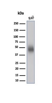 Formalin-fixed, paraffin-embedded human tonsil stained with CD48-Monospecific Mouse Monoclonal Antibody (CD48/4783) at 2ug/ml. HIER: Tris/EDTA, pH9.0, 45min. 2°C: HRP-polymer, 30min. DAB, 5min.