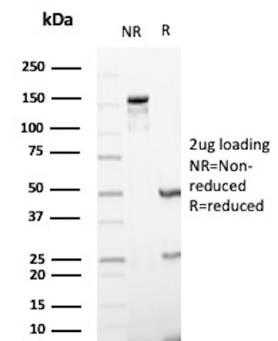 CD6 is a type I transmembrane glycoprotein that contains a 24-amino acid signal sequence, three extracellular scavenger receptor cysteine-rich (SRCR) domains, a membrane-spanning domain and a 44-amino acid cytoplasmic domain. The CD6 glycoprotein is tyrosine phosphorylated during TCR-mediated T cell activation. CD6 is present on mature thymocytes, peripheral T cells and a subset of B cells. Antibodies to CD6 are used to deplete T cells from bone marrow transplants to prevent graft versus host disease.