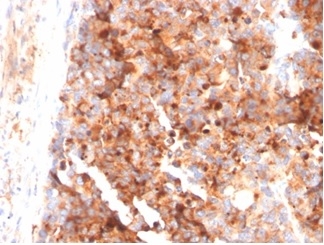 Formalin-fixed, paraffin-embedded human melanoma stained with CD63 Mouse Monoclonal Antibody (LAMP3/3315).