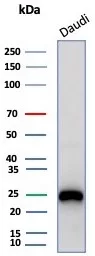 Western blot analysis of Daudi cell lysate using CD79a Recombinant Mouse Monoclonal Antibody (rIGA/6986).