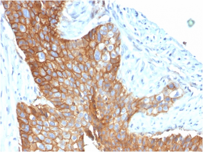 Formalin-fixed, paraffin-embedded human Cervical Carcinoma stained with CD9 Mouse Monoclonal Antibody (CD9/1619).