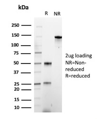 SDS-PAGE Analysis of Purified Chromogranin A Monoclonal Antibody (LK2H10). Confirmation of Purity and Integrity of Antibody.