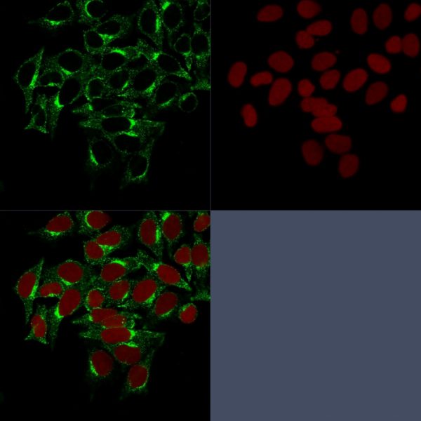 Recognizes protein of 192kDa, which is identified as Clathrin Heavy Chain. Clathrin is composed of three heavy chains and three light chains, which associate non-covalently to form a triskelion structure. Clathrin heavy chain (HC) is composed of a terminal globular domain, a distal segment and a proximal segment containing a light chain-binding site. The proximal segment of the Clathrin HC protein is essential for interactions between Clathrin heavy chains and light chains, which result in the formation of the triskelion structure.