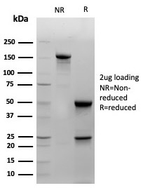SDS-PAGE Analysis of Purified Cytokeratin 14 Mouse Monoclonal Antibody (KRT14/4129). Confirmation of Purity and Integrity of Antibody.