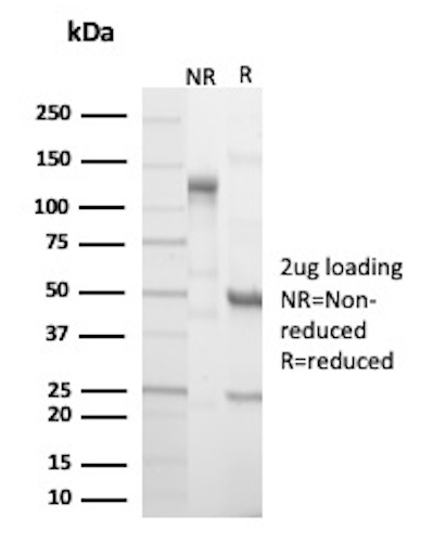 Formalin-fixed, paraffin-embedded human skin stained with Cytokeratin 15 Rabbit Recombinant Monoclonal Antibody (KRT15/2103R).