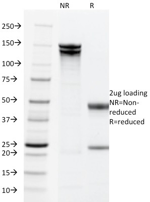 It is a cocktail of four highly specific monoclonal antibodies that recognize extracellular as well as intracellular domains of the epithelial cellular adhesion molecule (EpCAM). It is a 40-43kDa transmembrane epithelial glycoprotein, identified as epithelial specific antigen (ESA), or EpCAM. EpCAM is expressed on baso-lateral cell surface in most simple epithelia and a vast majority of carcinomas. This epithelial antigen plays an important role as a tumor-cell marker in lymph nodes from patients with esophageal carcinoma otherwise classified as node-negative. Epithelial antigen has also been suggested as a discriminator between basal cell and baso-squamous carcinomas, and squamous cell carcinoma of the skin.