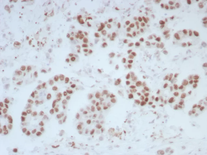 Recognizes a protein of 110kDa, identified as Excision Repair Cross Complementing 1 (ERCC1). It is a mammalian nucleotide excision repair (NER) enzyme involved in repair of damaged DNA. ERCC1 is a homologous to RAD10 in Saccharomyces cerevisiae, which is required in mitotic intrachromosomal recombination and repair. ERCC1 is required in repair of cisplatin-induced DNA adducts and ultraviolet (UV)-induced DNA damage. High expression of ERCC1 has been linked to tumor progression in a variety of cancers including non-small cell lung cancer (NSCLC), squamous cell carcinoma of the head, ovarian cancer and esophageal cancer.