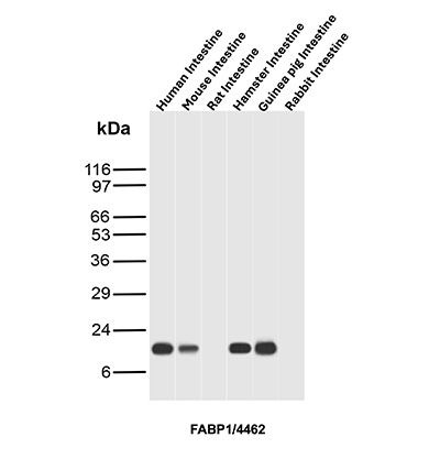 Western blot analysis of human Kidney lysate using FABP1 Mouse Monoclonal Antibody (FABP1/4462).
