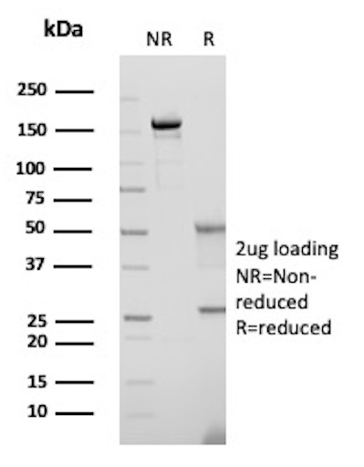 Fibronectin is a soluble dimeric glycoprotein of 440kDa, which is present in cells, extracellular matrix, and blood. This MAb reacts with the cellular as well as plasma form of fibronectin. Reportedly, after iv administration, this MAb localizes to tumor vessels where it binds to the underlying basement. Epitope recognized by this antibody is not accessible in normal tissues to the circulating MAb indicating that it can be used to specifically target tumor vessels in vivo. TV-1 is reportedly useful for delivering vasoactive agents to tumors to induce increased vascular permeability or blood flow prior to treatment with chemotherapeutic drugs or MAbs.