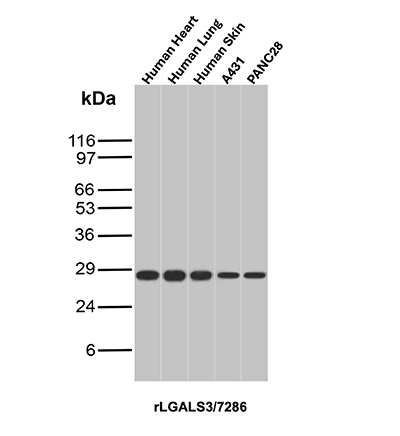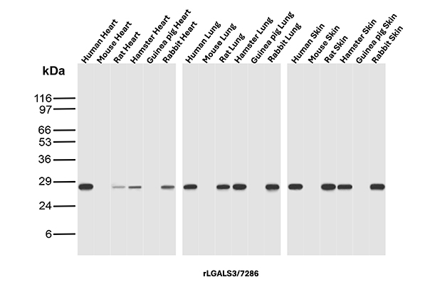 Galectin-3 is a member of the beta-galactosidase-binding lectin family. It is associated with cell growth, adhesion, inflammation, mRNA processing, and apoptosis. Aberrant expression of Galectin-3 is related to malignant transformation and metastasis in carcinomas of the breast, colon and thyroid.Galectin-3 reactivity can be seen in the nucleus of neutrophils, vascular endothelium, carcinomas of the colon, breast, and thyroid. Galectin-3 may be useful in the differentiation �of benign and malignant thyroid neoplasms.Galectin-3 may also be useful in the identification of certain liver disorders.