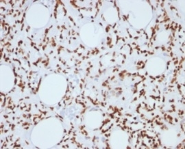Eukaryotic histones are basic and water-soluble nuclear proteins that form hetero-octameric nucleosome particles by wrapping 146 base pairs of DNA in a left-handed super-helical turn sequentially to form chromosomal fiber. Two molecules of each of the four core histones (H2A, H2B, H3, and H4) form the octamer; formed of two H2A-H2B dimers and two H3-H4 dimers, forming two nearly symmetrical halves by tertiary structure. Over 80% of nucleosomes contain the linker Histone H1, derived from an intronless gene that interacts with linker DNA between nucleosomes and mediates compaction into higher order chromatin. Histones are subject to posttranslational modification by enzymes primarily on their N-terminal tails, but also in their globular domains. Such modifications include methylation, citrullination, acetylation, phosphorylation, sumoylation, ubiquitination and ADP-ribosylation.