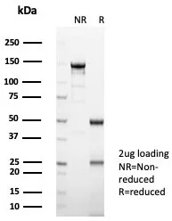 SDS-PAGE Analysis of Purified Interleukin-2 (IL-2) Mouse Monoclonal Antibody (IL2/4988). Confirmation of Purity and Integrity of Antibody.