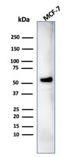 SDS-PAGE Analysis of Purified IRF3 Mouse Monoclonal Antibody (PCRP-IRF3-1E11). Confirmation of Purity and Integrity of Antibody.