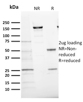 SDS-PAGE Analysis Purified Ki67 Mouse Monoclonal Antibody (MKI67/2466). Confirmation of Purity and Integrity of Antibody.