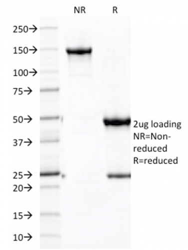 SDS-PAGE Analysis Purified CDH16-Monospecific Mouse Monoclonal Antibody (CDH16/2125). Confirmation of Integrity and Purity of Antibody.
