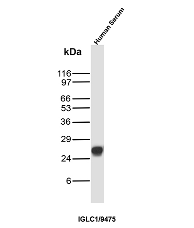This MAb is specific to lambda light chain of immunoglobulin and shows no cross-reaction with lambda light chain or any of the five heavy chains. In mammals, the two light chains in an antibody are always identical, with only one type of light chain, kappa or lambda. The ratio of Kappa to Lambda is 70:30. However, with the occurrence of multiple myeloma or other B-cell malignancies this ratio is disturbed. Antibody to the lambda light chain is reportedly useful in the identification of leukemias, plasmacytomas, and certain non-Hodgkin’s lymphomas. Demonstration of clonality in lymphoid infiltrates indicates that the infiltrate is malignant.