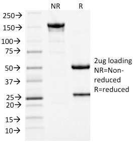 SDS-PAGE Analysis of Purified MCM7 Mouse Monoclonal Antibody (MCM7/1467). Confirmation of Integrity and Purity of Antibody.