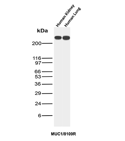 In Western blotting, it recognizes proteins in MW range of 265-400kDa, identified as different glycoforms of EMA. This MAb reacts with the DTRP epitope in the tandem repeats. The alpha subunit has cell adhesive properties. It can act both as an adhesion and an anti-adhesion protein. EMA may provide a protective layer on epithelial cells against bacterial and enzyme attack. The beta subunit contains a C-terminal domain, which is involved in cell signaling, through phosphorylations and protein-protein interactions. �In immunohistochemical assays, it superbly stains routine formalin/paraffin carcinoma tissues. Antibody to EMA is useful as a pan-epithelial marker for detecting early metastatic loci of carcinoma in bone marrow or liver.