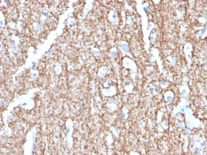 Formalin-fixed, paraffin-embedded human brain stained with Myelin Basic Protein Rat Monoclonal Antibody (MBP/4273).