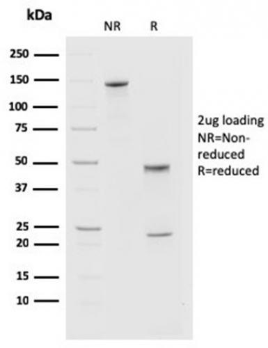 SDS-PAGE Analysis of Purified PD1 (CD279) Mouse Monoclonal Antibody (PDCD1/2720). Confirmation of Purity and Integrity of Antibody.