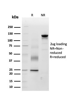 SDS-PAGE Analysis Purified Periostin (POSTN) Mouse Monoclonal Antibody (POSTN/3503). Confirmation of Purity and Integrity of Antibody.