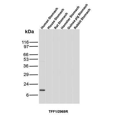 Western Blot Analysis of Human Stomach tissue lysate using TFF1 Recombinant Rabbit Monoclonal Antibody (TFF1/2969R).