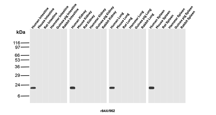 Western Blot Analysis of A-549 lysate using Bax Recombinant Mouse Monoclonal Antibody (rBAX/962).