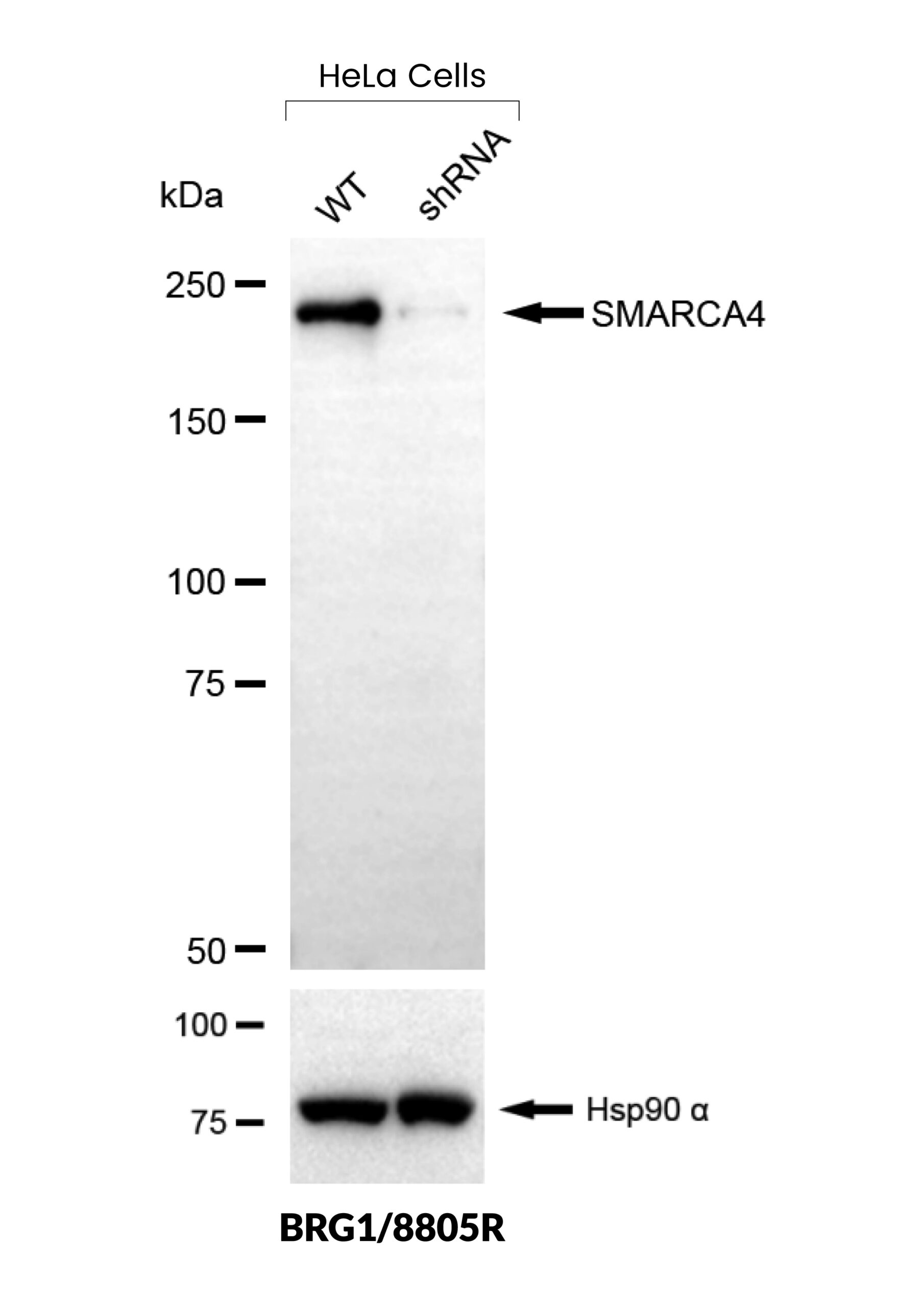 Western blot analyses of HeLa, Jurkat and K-562 cell lysates using BRG1 Recombinant Rabbit Monoclonal Antibody (BRG1/8805R).
