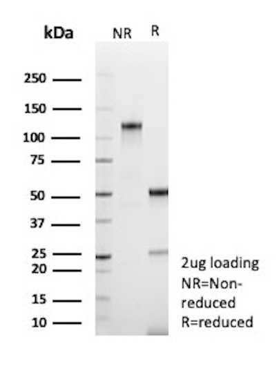 SDS-PAGE Analysis of Purified EpCAM Recombinant Rabbit Monoclonal Antibody (EGP40/8774R). Confirmation of Purity and Integrity of Antibody.