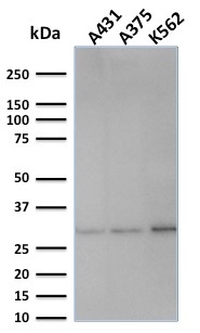 Recognizes a protein of 34kDa, identified as a subunit of Replication Protein A (RPA) (also known as human single-stranded DNA binding protein, or HSSB). RPA from human cells is a stable heterotrimer of 70kDa, 32-34kDa, and 11-14kDa subunits (RPA70, RPA32, and RPA14 respectively). It is involved in DNA replication, repair, and recombination. RPA is required for the SV40 large tumor antigen-catalyzed unwinding of SV40 DNA and stimulates DNA polymerase (pol) alpha and delta. RPA34 is phosphorylated at the G1/S boundary of the cell cycle or upon exposure of cells to DNA damage-inducing agents including ionizing and UV radiation.