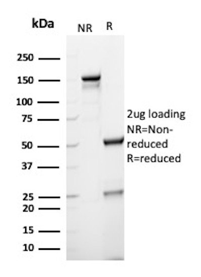 S100 belongs to the family of calcium binding proteins. S100A and S100B proteins are two members of the S100 family. S100A is composed of an alpha and a beta chain whereas S100B is composed of two beta chains. This antibody is specific against an epitope located on the beta-chain (i.e. in S-100A and S-100B) but not on the alpha-chain of S-100 (i.e. in S-100A and S100A0). This antibody can be used to localize S-100A and S-100B in various tissue sections. S-100 protein has been found in normal melanocytes, Langerhans cells, histiocytes, chondrocytes, lipocytes, skeletal and cardiac muscle, Schwann cells, epithelial and myoepithelial cells of the breast, salivary and sweat glands, as well as in glial cells. Neoplasms derived from these cells also express S-100 protein, albeit non-uniformly. A large number of well-differentiated tumors of the salivary gland, adipose and cartilaginous tissue, and Schwann cell-derived tumors express S-100 protein. Almost all malignant melanomas and cases of histiocytosis X are positive for S-100 protein.