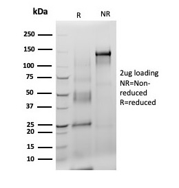 SDS-PAGE Analysis of Purified S100B Mouse Monoclonal Antibody (S100B/4140). Confirmation of Purity and Integrity of Antibody.