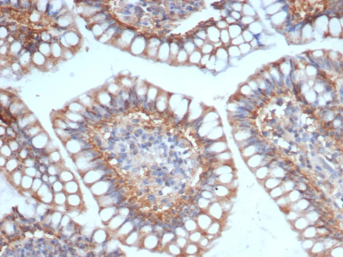 Siglec-10 (sialic acid-binding Ig-like lectin 10) is a 697 amino acid protein belonging to the immunoglobulin superfamily. The N-terminal Ig-like domain of Siglec-10 contains a sialic acid-binding site and the C-terminal cytoplasmic region of Siglec-10 contains two immunoreceptor tyrosine-based inhibitor motifs (ITIMs), which are involved in the modulation of cellular responses through SH2 domains. With most expression in spleen, bone marrow and peripheral blood lymphocytes, such as monocytes, natural killer cells and eosinophils, it is likely that Siglec-10 functions as an inhibitory receptor in the immune response. Importantly, Siglec-10 mRNA is found to be highly upregulated in eosinophils at sites of inflammation in asthmatics, suggesting that Siglec-10 may be an appropriate target for new approaches of immunomodulatory therapy. There are six named isoforms of Siglec-10 that are a result of alternative splicing. All isoforms exists as single-pass transmembrane proteins, except for isoform 6, which is secreted.