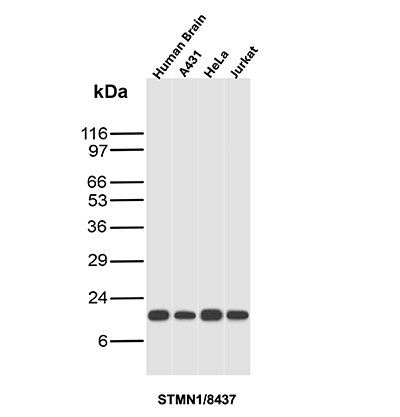 Op18 (for oncoprotein 18, also designated stathmin, prosolin or metablastin) is a conserved, Tubulin-associated, intracellular phosphoprotein. Many different phosphorylated forms of Op18 are observed, and it is expressed as two different isoforms. Op18 is considered a critical regulator of microtubulin dynamics and is downregulated by p53. It serves as a transducing protein, via phophorylation, for a variety of cell signaling pathways and is involved in both mitosis and differentiation.Op18 is present in many cancers, including breast carcinomas, and is highly expressed in acute leukemias of different subtypes.