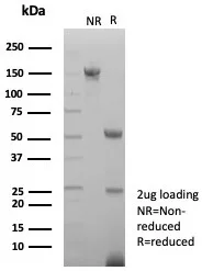 200ug/ml of Ab purified from Bioreactor Concentrate by Protein A/G. Prepared in 10mM PBS with 0.05% BSA & 0.05% azide. Also available WITHOUT BSA & azide at 1.0mg/ml.