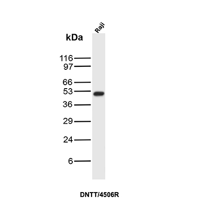 Terminal deoxynucleotidyl transferase (TdT) is an unusual deoxynucleotide polymerizing enzyme with a molecular weight of about 58 kDa found normally only in B- and T-cell lymphoblasts/prelymphocytes. TdT generates antigen receptor diversity by synthesizing non-germ line elements (N-regions) at the junctions of rearranged Ig heavy chain and T cell receptor gene segments. Rare TdT-positive cells are regularly detected in thymus and bone marrow. Typically, TdT expression in the thymus is very variable from cell to cell since it is rapidly decreased in more mature T-cells. TdT-positive cells may occasionally be found in tonsils, lymph nodes and extranodal lymphoid tissue. Immunohistochemical detection of TdT has value in classification of malignant lymphomas and acute leukemias, particularly for the identification of pre-B and pre-T acute lymphoblastic leukemia/lymphoblastic lymphoma (ALL/LBL).