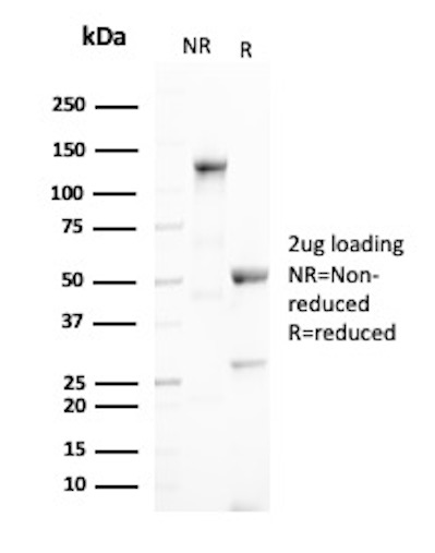 It recognizes a protein of 35kDa, which is identified as tartrate-resistant acid phosphatase (TRAcP). It exists as two isoforms (5a and 5b). This MAb reacts with both the isoforms. Serum TRAcP 5a is secreted by macrophages and dendritic cells and increased in many patients of rheumatoid arthritis.Serum TRAcP 5b is produced from osteoclasts and elevated during bone resorption. TRAcP is an iron containing glycoprotein, which catalyzes the conversion of orthophosphoric monoester to alcohol and orthophosphate. It is the most basic of the acid phosphatases and is the only form not inhibited by L(+)-tartrate. TRAcP is synthesized as a latent proenzyme and is activated by proteolytic cleavage and reduction. Normally, TRAcP is highly expressed by osteoclasts, activated macrophages, neurons and endometrium during pregnancy. Expression of TRAcP is increased in certain pathological conditions such as Leukemic Reticuloendotheliosis (Hairy Cell Leukemia), Gaucher’s Disease, HIV-induced Encephalopathy, Osteoclastoma and in osteoporosis and metabolic bone diseases. Anti-TRAcP antibody labels the cells of Hairy Cell Leukemia (HCL) with a high degree of sensitivity and specificity. Other cells stained with this antibody are tissue macrophages and osteoclasts.