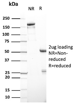 200ug/ml of Ab purified from Bioreactor Concentrate by Protein A/G. Prepared in 10mM PBS with 0.05% BSA & 0.05% azide. Also available WITHOUT BSA & azide at 1.0mg/ml.