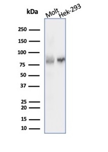 The Ku protein is localized in the nucleus and is composed of subunits referred to as Ku-70 (or p70) and Ku-86 or (p86) which is also known by the synonym Ku-80 or (p80). Ku was first described as an autoantigen to which antibodies were produced in a patient with scleroderma-polymyositis overlap syndrome, and was later found in the sera of patients with other rheumatic diseases. Ku has several functions, including cell signaling, DNA replication and transcriptional activation. Ku is involved in Pol II-directed transcription by virtue of its DNA binding activity; serving as the regulatory component of the DNA-associated protein kinase that phosphorylates Pol II and transcription factor Sp. Ku proteins also activate transcription from the U1 small nuclear RNA and the human transferrin receptor gene promoters.